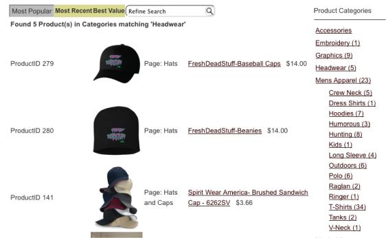 Users can sort products by "Most Popular", "Most Recent" and "Best Value" within any Category and even further refine their search for any keyword that exists within a Product Name, Description or Price.